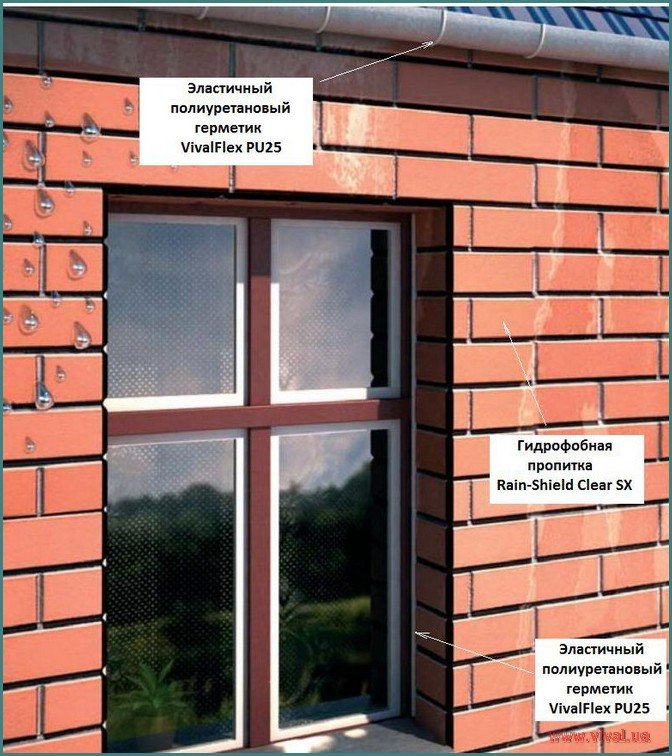 Осуществляется герметизация шва соединения фасадной стены с рамой окна с помощью эластичного полиуретанового герметика VivalFlex PU25.