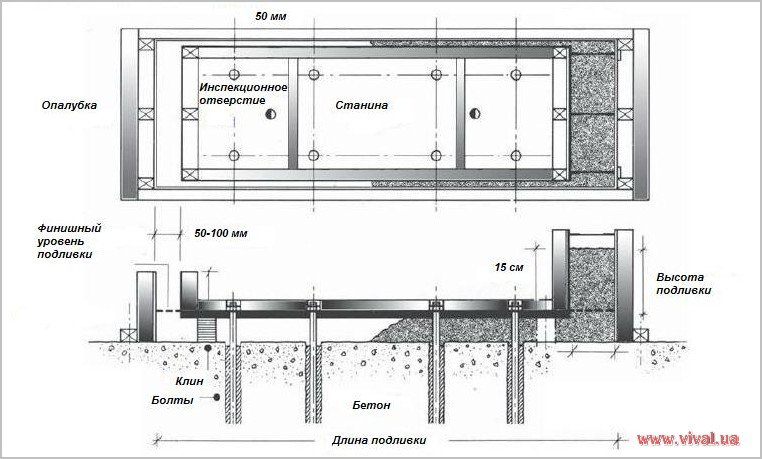 Наиболее часто подливочные составы используются для подливки оснований станков и тяжелых механизмов, часто подверженных вибрационным нагрузкам. Часто высота подливки достаточно малая, поэтому необходимо использовать специальные воронки для увеличения гравитационного давления подливки и более легкого заполнения пространства подливки. В экстренных случаях можно использовать цепь или кабель, протянув его под конструкцией. Простым перемещением цепи вперед-назад и подливанием можно добиться полного и равномерного заполнения подливаемого пространства. Не стоит забывать об отверстиях для выхода воздуха, а также об инспекционных отверстиях.